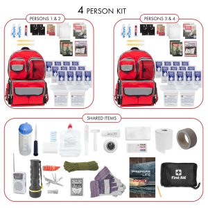 Family Prep Survival Kit with Water Purification Straw Filter – 4 Person | No Masks or Colored Box