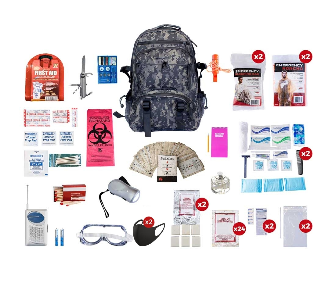 - (2) 1-Liter Hydration Bags with Straw*This kit provides 1 gallon of water per person per day for drinking and sanitation, as recommended by FEMA.