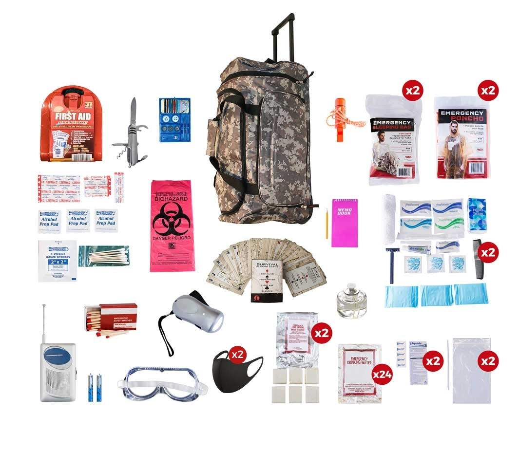 - (2) 1-Liter Hydration Bags with Straw*This kit provides 1 gallon of water per person per day for drinking and sanitation, as recommended by FEMA.
