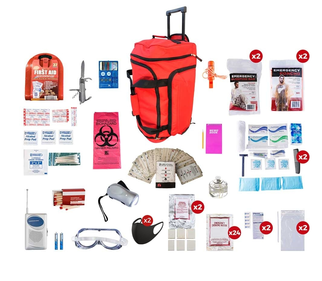 - (2) 1-Liter Hydration Bags with Straw*This kit provides 1 gallon of water per person per day for drinking and sanitation, as recommended by FEMA.