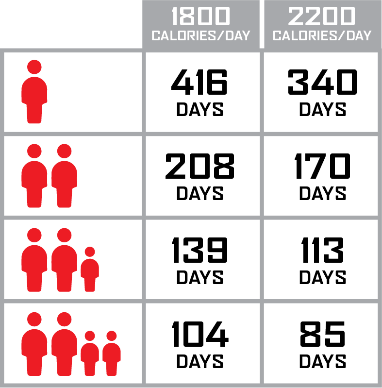 - 48 pouches of Pasta Alfredo (192 total servings)