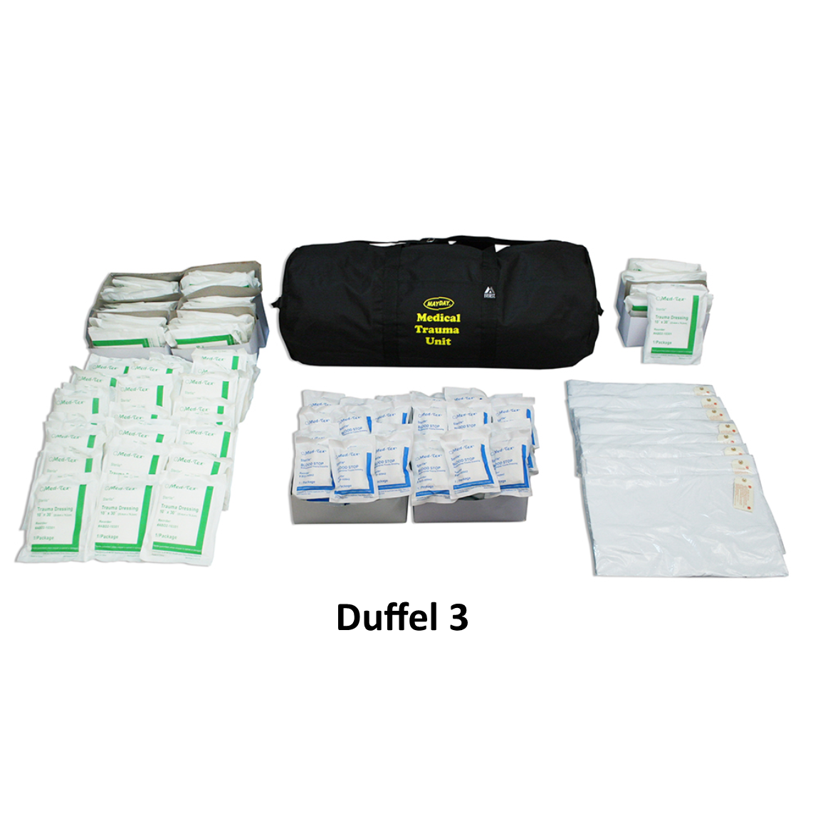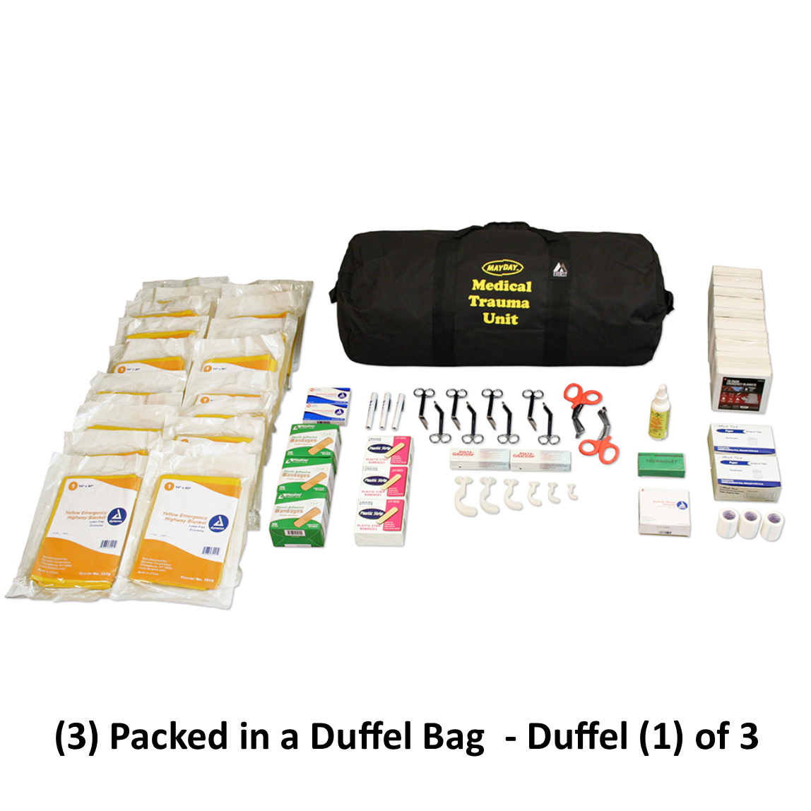 | Contents | (300) Adhesive Bandage (1″ x 3″) (200) Gauze Pad (2″ x 2″) (48) Non-Sterile Gauze Pad (2″ x 4″) (200) Gauze Pad (3″ x 3″) (300) Plastic Bandage (3/4″ x 3″) (30) Surgical Tape Adhesive (1′ x 10 yards) (2) Isopropyl Alcohol (16 oz) (2) Ammonia Inhalant (box of 10) (200) Antiseptic Towelettes (8) Bandage Scissors (1) Berman Airway Kit (8) Body Bag with Toe Tags (36″ x 90″) (4) Cervical Collar (3) Doctor’s Penlight (50) Sterile Eye Pad (4) Eye Wash (4 oz) (8) Hydrogen Peroxide (4 oz) (48) Ice Pack (6″ x 9″) (1) Insect Repellent Spray Bottle (1) Medium Roll Bag (2) Glucose Gel (100) Butterfly Bandage (large) (50) Large Mayday Solar Blanket (20) Paramedic Blanket (2) EMT Paramedic Scissors (1) Tourniquet (3) Splint Kit (25) Triangular Bandage (36″ x 36″) (75) Blood Stopper Trauma Dressing (20) Ace Badnage (3″ x 4.5 yards) (2) Large Roll Bag (3) Burn Care Kit (300) Nitrile Gloves (200) Sterile Gauze Pads (75) Multi Trauma Dressing (10″ x 30″) |