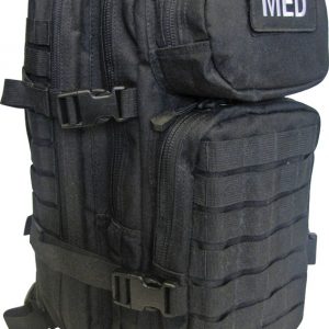 Contents Include: 1-blood pressure cuff kit; 1-cervical collar; 1-stethoscope; 1-pen light; 2-sutures; 1-first aid book; 8-pair exam gloves; 10-abdominal pads 5″ x 9″; 20-pain reliever/aspirin; 6-safety pins; 2-casualty blankets 84″ x 52,silver/od; 1-calamine lotion 6 oz.; 6-after bite wipes; 1-elastic bandage 6″; 2-tape 1″; 5-eye pads; 16-bandage strip 1″x3″; 5-bandage strip 2″ x 3″; 2-ice packs; 2-stainless hemostats; 1-scalpel handle #3; 5-tongue depressor; 45-antiseptic wipes; 2-air ways; 1-skin and eye wash; 5-burn aid package; 1-hand sanitizer 2 oz.; 1-hand soap; 1-Sam/univ. splint; 5-sterile gauze 4″ x 4″; 2-BleedStop bandages; 2-triangular bandages 40″ x 40″ x 56″; 5-butterfly strip; 10-knuckle bandage; 1-EMT shears; 1-tweezers; 2-scalpel blades; 1-CPR mask; 5-ammonia inhalants; 3-multi-trauma dressing 12″ x 30″; 10-triple antibiotic ointment; 1-latex tourniquet. All items are packed in 18″ x 10″ x 11″ heavy duty canvas backpack with padded shoulder straps. MOLLE compatible with quick release buckles. Lots of interior compartments.