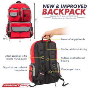 - Discrete Red Backpack: All the survival supplies are conveniently packed in a discrete, nondescript, heavy-duty backpack that won’t draw unwanted attention to you and your valuable emergency supplies during a disaster. We pack our emergency survival kits to be as light-weight and as compact as possible, so it won’t weigh you down and you’ll still have enough space remaining to include personal items such as medication, clothing, child comfort items, pet items, and important documents.