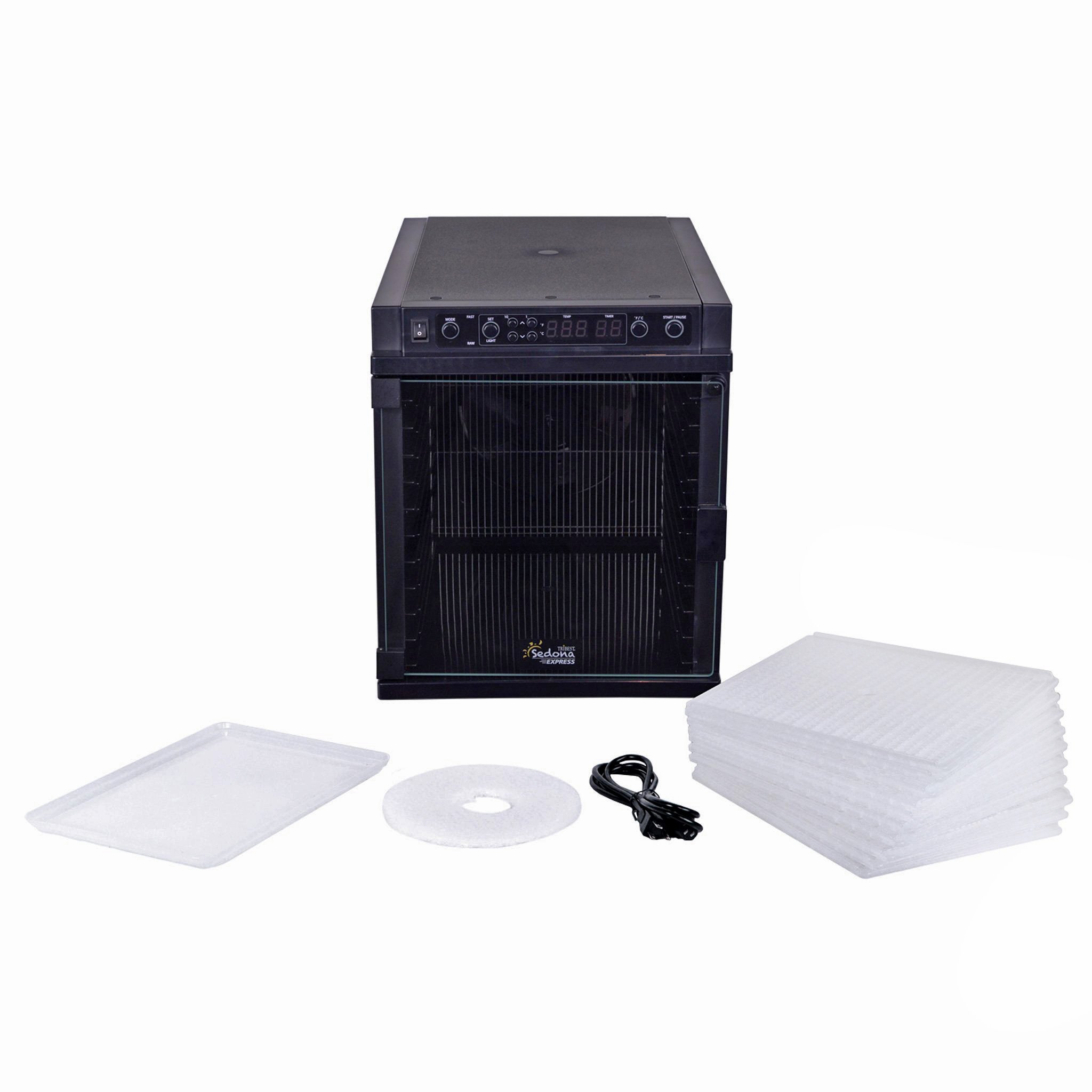The Sedona® Express is the world’s first full-featured dehydrator with a compact, kitchen-friendly design. Use all 11-trays with the advanced TST feature to get the best results for all your dehydrating needs. From fruits and vegetables, to meats and crackers, the Sedona’s® central single-fan technology ensures even airflow and rapid dehydration. The Sedona® Express allows you to set the temperature and timer using its user-friendly all-digital controls; precision dehydration has never been so easy. Two-Stage Sequential Temperature-Timer (TST) feature reduces dehydration time and gets you enzyme-rich foods. Its advanced digitally-controlled TST feature allows you to kick-start the dehydration process by starting at a higher temperature (FAST mode) for the first few hours, then automatically switching to a lower temperature (RAW mode) to finish off the job. The TST feature ensures that the temperature of the food does not go above the desired level, and results in nutrition-packed dehydrated recipes every time.