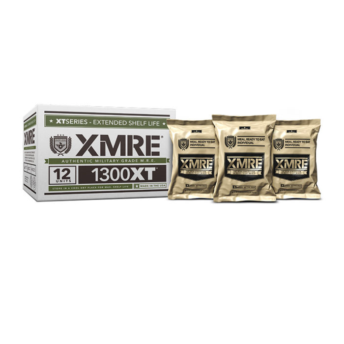 The XMRE® 1300XT® provides 1,200 – 1,500 calories of US military grade, ready to eat meal components. All components are field tested and fully cooked so they can be eaten right out of the pouch. The 1300XT® is always freshly packed. The XMRE® 1300XT® is designed as a military MRE (MEAL -READY-TO-EAT) that can also meet the needs of the civilian market.