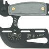 54″ overall. Includes: Zubin Axe with rubber protection, compass, fishing spear, hunting spear, saw blade, slingshot, full and short handle, and T-handle allen tool. Two-piece aluminum construction with ergonomic rubber grip. Five interchangeable 440C stainless construction tools. Black nylon pouch.